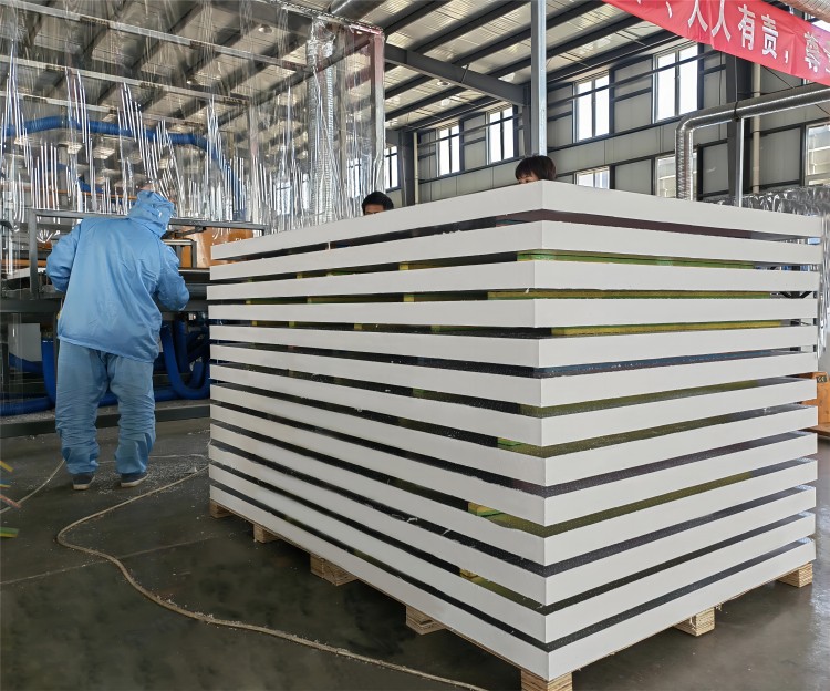 公司目前有四条生产线,能够生产多种厚度的保温板,长度可根据实际需要调节切割距离。今年生产线升级后,产出的保温板应用范围更加广泛能满足更多企业的不同需求